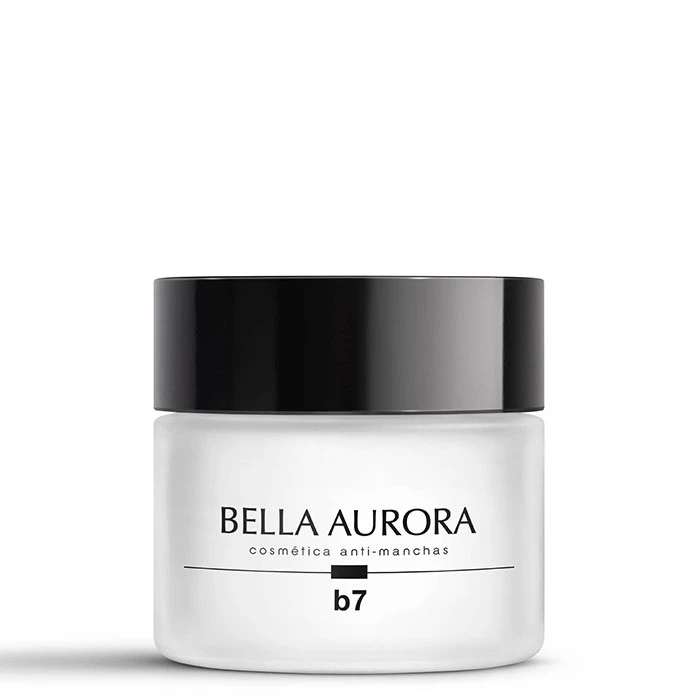 Es una crema regeneradora y aclarante de día formulada con ácido hialurónico y polímeros vegetales que proporcionan una hidratación intensiva a lo largo de todo el día. Incluye SPF15, calma, nutre, despigmenta aclarando las manchas, unifica el tono de la piel y proporciona luminosidad. Está indicada para piel normal-seca, de textura crema se extiende uniformemente y facilita su absorción. Con Bella Aurora B7 Anti-manchas se reducen las líneas de expresión y arrugas, el rostro luce radiante, fresco y rejuvenecido durante más tiempo.