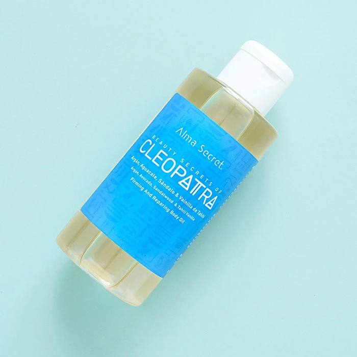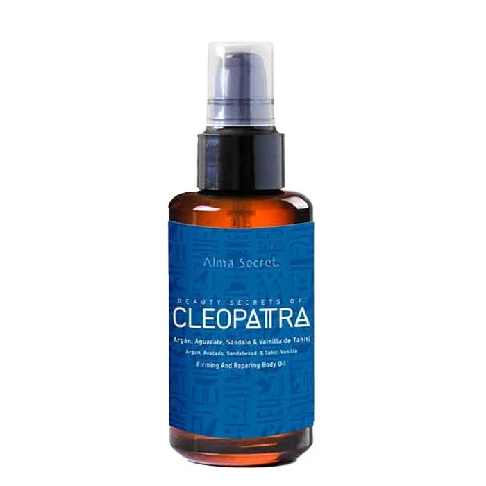 Cleopatra Aceite Reafirmante y Rejuvenecedor de Alma Secret es un aceite antiedad para brazos, busto, glúteos y piernas.