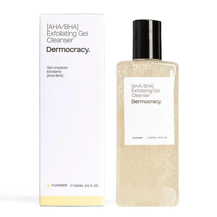 Gel Limpiador Exfoliante AHA/BHA de Dermocracy es un gel que exfolia y limpia en profundidad, desobstruye poros y controla el exceso de grasa.