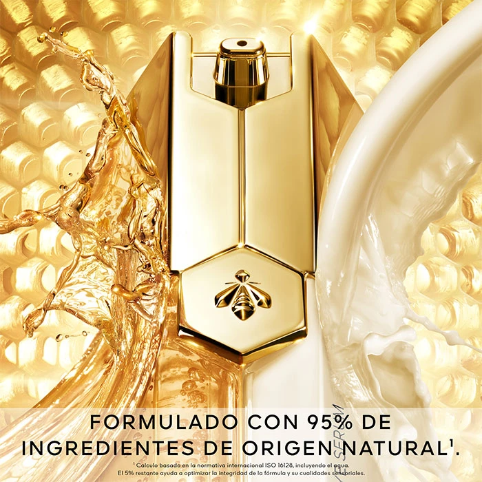 ¹ Conforme a la normativa ISO 16128, incluyendo el agua. El 5 % restante contribuye a optimizar la integridad de la fórmula con el paso del tiempo y su sensorialidad. ² Test in vitro realizado en los ingredientes. ³ Tecnología reparadora dinámica de la Abeja Negra. ⁴ Patente francesa núm. FR219/13610 con fecha de 12/02/2019 y PCT/IB2020/061310 con fecha de 01/12/2020. ² En Guerlain.