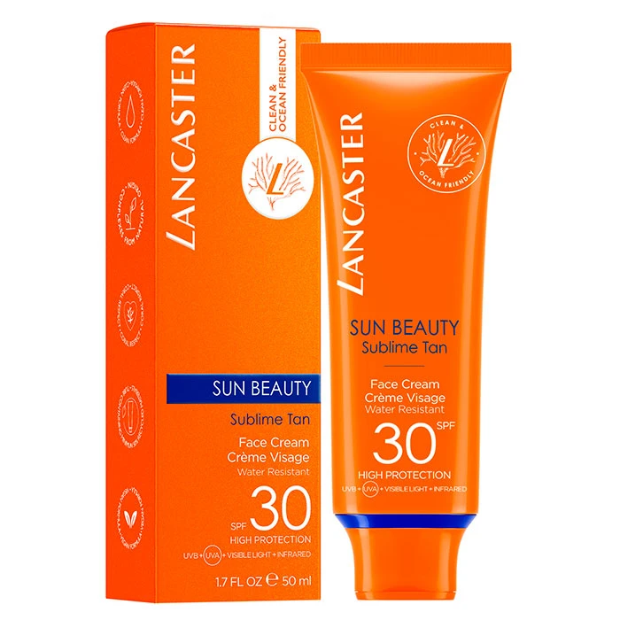 Sun Beauty Sublime Face Cream SPF30de Lancaster es un protector solar facial con tecnología infrarrojos que ayuda a reparar la piel.