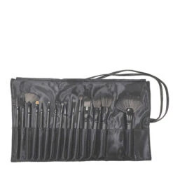 Esta manta de maquillaje de calidad superior está compuesta por 15 pinceles y brochas de mango negro ubicados específicamente en su interior con un departamento propio para evitar desplazamientos y el correcto mantenimiento de su calidad. Están protegidos por una manta enrollable que permite recogerlos ordenadamente y facilitar su aplicación.