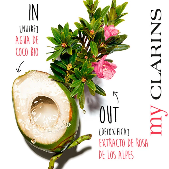 La fórmula de My Clarins Re-Boost contiene un cóctel de extractos de frutas; agua de coco, rosa de los Alpes, goji, higuera, acerola y frutos del árbol mantequero, ingredientes de origen natural y muy muy healthy.