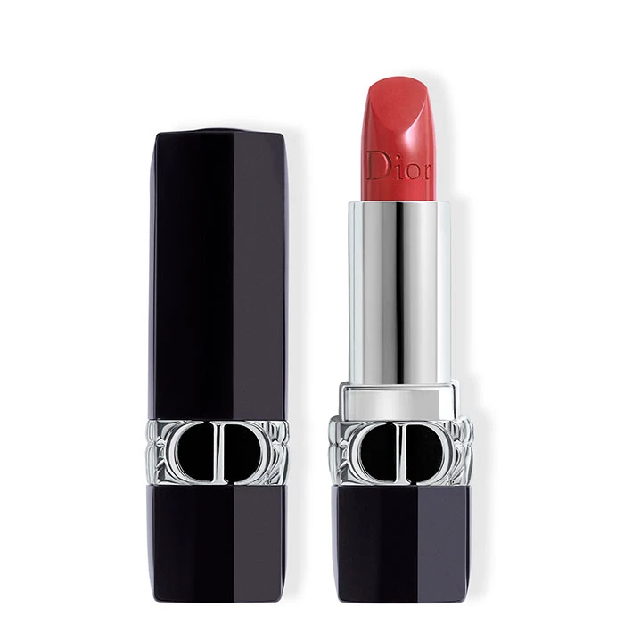 Rouge Dior es recargable como parte de la iniciativa de ecoconcepción de Dior. Su estuche está realzado por la banda adornada con las iniciales “CD”, evocando los cinturones de las modelos en los desfiles de la Maison.