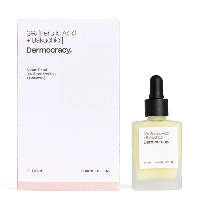Sérum 3% Ácido Ferúlico + Bakuchiol de Dermocrazy es un sérum que protege, regenera y estimula la renovación celular.