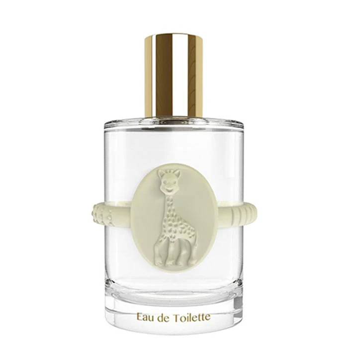 El original frasco de Sophie La Girafe Eau de Toilette es de cristal transparente rodeado por un detalle que lo rodea simulando un anillo de dentición donde destaca la simpática girafa Sophie protagonista que ilumina la mirada del bebé y lo convierte en un momento divertido. Su tapón cilindro dorado metalizado es liso y brillante para captar la atención de los más pequeños y favorecer el hábito de cuidado diario agradable y delicado que evoca la infancia.