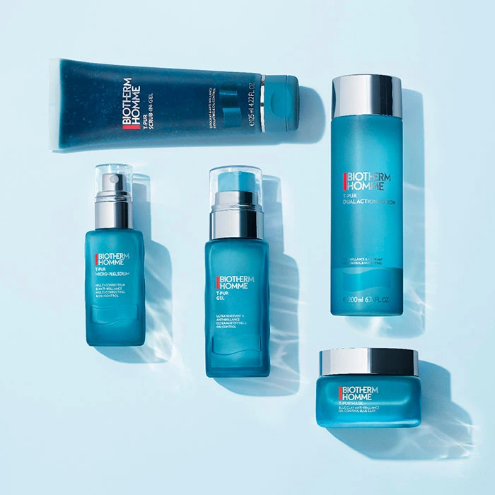 De textura gel ligero y fresco, Biotherm Homme T-Pur Refining Micro-Peel Serum, es apto para todo tipo de pieles y ha sido dermatológicamente probado en pieles grasas con tendencia al acné.