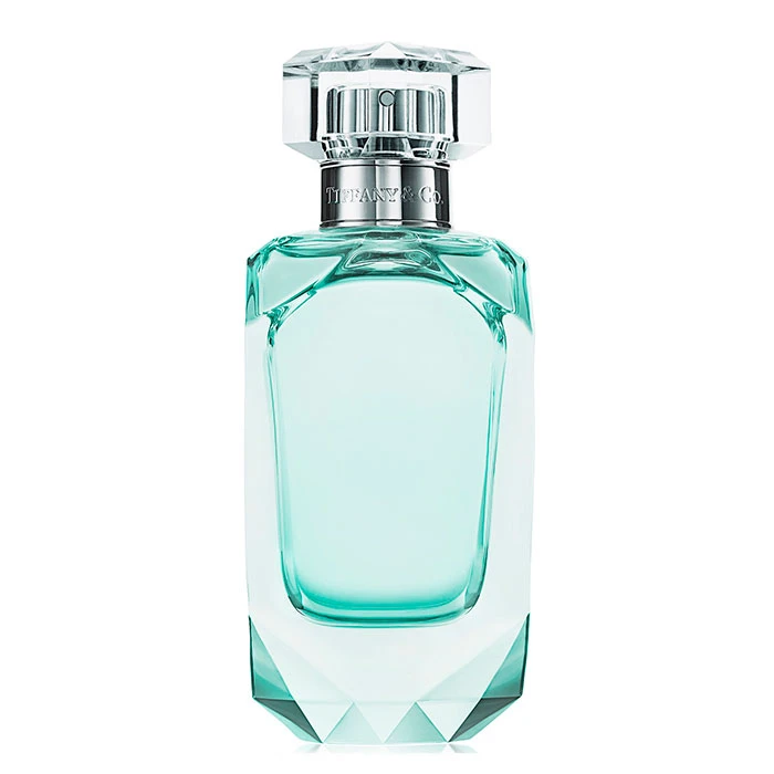 El frasco de Tiffany Eau de Parfum Intense sigue la forma del perfume anterior, cuidando hasta el mínimo detalle. La botella ha sido tratada y creada artesanalmente, al igual que el aroma, como un verdadero diamante. Las formas clasicistas, puras y limpias se combinan con las características formas de diamante y joya, tanto en la base como en la parte superior de la botella y en el tapón. La esencia interior se oscurece, acercándose de una mayor manera al color característico de la imagen de marca de Tiffany, y todo su packaging. Una auténtica joya olfativa, con una presencia exquisita y deliciosa.